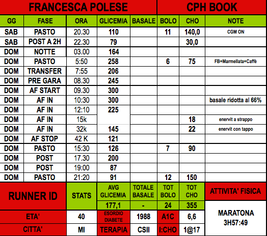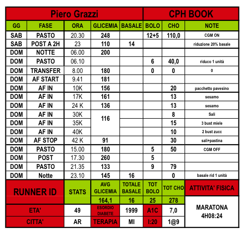 ROADMAP 2012 > Missione Copenhagen!![]() > ultimo aggiornamento 29 maggio 2012 Il Team DNL ai nastri di partenza della Copenhagen Marathon del 20 maggio p.v. Intro > Nel 90° compleanno dell'insulina e nel 5° anniversario della fondazione di DNL, il Team Diabete No Limits Italia sarà ai nastri di partenza della Maratona di Copenhagen, capitale europea della produzione sintetica dell'ormone che regola il livello di glucosio nel sangue. Nel gennaio 1922 l'insulina viene usata per la prima volta per curare il diabete in un essere umano: infatti due bambini furono i primi a ricevere il trattamento che avrebbe salvato, dopo le loro, milioni di vite in tutto il mondo. Nel 2007, Augusto, Pippo e Cristian, tre persone con diabete di tipo 1 insulino-trattato, fondano una onlus dedicata alla pratica sportiva responsabile, condivisa e in campo aperto: dopo di loro, altre centinaia di appassionati sportivi avrebbero beneficiato di questo nuovo approccio al diabete, fatto di BASALE USO DELLA TESTA & BOLI DI ENTUSIASMO! *** 10 RIGHE DA COPENHAGEN (featuring CPH_BOOK) ![]() Righeggiando da Copenhagne ... By Nick the Click • 6 giugno 2012 Sicuramente sarò l'ultimo a comporre le famose 10 righe che distinguono ogni volta i nostri eventi.....ma come sapete spesso le mie immagini illustrano sensazione che anche io a parole farei fatica a esprimere......ecco perchè appena tornato mi son subito dedicato alla sistemazione delle foto, rimandando tutto il resto. Anche questa trasferta Nordica si può definire un calderone di emozioni, piacevoli conferme e qualche novità. Non si finisce mai di imparare certe cose, e anche se il confronto tra di noi non trovava molto spazio in questi 5 giorni, è stato per me un buon momento per ascoltare ancora una volta esperienze altrui e riflettere sulla gestione delle mie Glicemie.....tanto da tornare a casa e provare/testare un approccio diverso della mia gestione giornaliera con picoole modifiche di basale cercando di coprire i momenti in cui ero scoperto. Al di là di queste mie personali riflessioni, eravamo tutti assieme ancora una volta per dare, chi più e chi meno, il nostro supporto al DNL Team nella "fredda" Copenhagen. Chi l'ha detto che chi sta a guardare non sente la tensione della gara????......credo di poter parlare a nome di tutti noi attivi supporter, se dico che vivere i giorni prima di una maratona a contatto con persone che la preparano per mesi, fa salire l'adrenalina del gruppo indipendentemente che uno corra oppure no. Personalmente, nonostante abbia documentato parecchi eventi ormai, sento acnora le tensione e la voglia di voler compiere il mio dovere reporter al meglio. Insomma in queste occasioni ogni persona vive la giornata della maratona in maniera diversa.....ma pur sempre in modo sentito.....e questo penso sia 1 dei 1000 lati fantastici di questo gruppo. Da spettatore silenzioso mi ha fatto un'enorme piacere vedere Piero che consolidava un lavoro partito più di un anno fa a Parigi......là senduti tutti allo stesso tavolo parlavate di Copenhagen come di una delle tante cose da fare (una di quelle cose che quando si parla tra amici al 99% saltano, perchè così lontane che poi se lo dimenticano tutti)..... e invece eccovi qui a tagliare il traquardo in forma smaliante!!! Allo stesso modo non provo neanche immaginare l'emozione provata da Francesca al suo esordio in Maratona......tutti certi che ce l'avrebbe fatta, l'unica scettica era lei....un po' come la secchiona del gruppo che a scuola diceva di non sapere mai niente e poi piazzava l'interrogazione da paura.......grande la nostra maestrina.....complimenti!!!!! Per Pietro e Cristian ormai le parole si ripetono di gara gara.....mi inchino davanti alla loro prestanza fisica ma sopratutto mentale......perchè credo che sia sopratutto dalla mente che parta il tutto. Così distanti dalla mia realtà e livello di preparazione atletica ma allo stesso tempo fonte d'ispirazione e stimolo per migliorarsi sempre. Unica nota dolente l'odore isopportabile della mia stanzetta, così forte da svegliarmi più volte nel corso della notte e anche da farmi dimenticare il sottile materasso che mi divideva dal cemento del pavimento.....ma fa parte anche queste delle nostre avventure che ci divertiamo a raccontare. Ora vi saluto e vado a correre.......ascoltando "It's long way to the top" e pensando a voi Righeggiando da Copenhagen ... by Pietro Nonno Pesenti • 29 maggio 2012ATLETICAMENTE: non riesco a valutare la condizione atletica, ma posso sicuramente giudicare la condotta di gara...pessima! Sapevo di non poter ambire a tempi vicino alle 2h50'/2h52', e l'obiettivo era quello di impostare un ritmo non più veloce di 4'06" (forse anche un paio di secondi più lento). Contro ogni logica, spinto da un irrefrenabile istinto agonistico, ho invece corso i primi 21,097 km in 1h25'34" (@4'03"), ovvero tre/quattro secondi meno di quanto (forse) potessi concedermi e non sono pochi! Nonostante fossi cosciente del rischio, ero comunque fiducioso e nella mia testa frullava la speranza di poter perdere al massimo due minuti nella seconda parte di gara e quindi terminare in circa 2h53'. Stavo facendo i conti senza l'oste..."danese"! Già al 22°km e per i successivi 5km, complice anche il percorso zizzagante e il caldo inaspettato, ero infatti costretto a rallentare il ritmo (@4'09"). Ero preoccupato per il calo improvviso e non riuscivo a capacitarmi che fosse arrivato così presto. Purtroppo il peggio doveva ancora arrivare! La "benzina" era ormai agli sgoccioli e dal 28°km sino al 35°km cercavo di limitare i danni correndo più col cuore che con le gambe (@4'20"). Un calvario gli ultimi interminabili 7km e 197mt...completamente senza forze, correvo solo per inerzia (@4'33")! Finalmente giungevo al traguardo, fisicamente e moralmente distrutto...rabbia e delusione i miei sentimenti! Un paio d'ore per riprendermi, fisicamente e mentalmente e buttare alla spalle la mia settima maratona, quella gestita nel peggiore