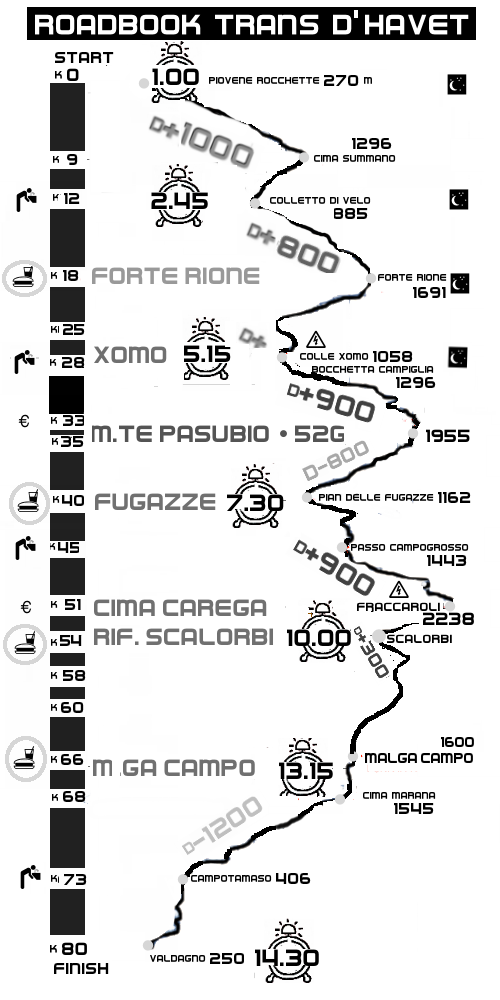 DNL @ TRANS D'HAVET 2013 • 27 luglio 2013 • h 1,00 ![]() Piovene Rocchette/Valdagno (VI) • 80 km 5500 d+ ![]() Issimo @ 52 Gallerie Pasubio BREAKING NEWS TEAM DNL @ TdH 2013 ... 1 FINISHER 1 QUITTER = TRAIL AS YOU ARE! Altro tassello nel percorso di crescita e conoscenza di noi stessi ... finisher o quitters non importa! Ci abbiamo provato, come piace a noi ... responsabilmente e in campo aperto! Più sotto report e considerazioni dei protagonisti a 360 gradi! ![]() “FRETTOLOSAMENTE QUITTER” testo di Alessandro Grippo A nulla sarebbe valso allenarmi di più o meglio se al via della Trans d’Havet fossi arrivato in ogni caso con così poca carica mentale. Il mio ritiro al 48°km è frutto esclusivamente di pensieri negativi e automortificanti che mi hanno accompagnato durante tutte le mie 10 ore di gara. Fisicamente non mi mancava nulla per essere in qualche modo finisher. Ho saputo tener testa all’apatia per troppo poco tempo. La mia testa non era impegnata a tenere a freno i segnali di fatica e di stress in arrivo dai muscoli e dalle ossa, era impegnata a combattere i cattivi pensieri. Pensieri inutili che fioccavano come gocce di pioggia da un cielo grigio, fino ad affogarmi e rendermi quitter. ![]() Nel single treck nel bosco che portava al monte Alba ho espresso forse la migliore performance della giornata, nonostante le pendenze fossero veramente importanti, riuscivo a produrre delle buone velocità ascensionali nell’ordine dei 600/650 mt/hr. Scollinato il monte Alba al ristoro del passo Xomo mi trovo ad affrontare la prima crisi vera della giornata. Con lo stomaco in subbuglio dalle numerose integrazioni della notte, a cui sono stato costretto a causa di una superficiale condotta metabolica, medito già un ritiro. Ad eccezione dei fastidi allo stomaco non avvertivo altri fastidi fisici. Tuttavia più volte seduto davanti al ristoro ho meditato di prendere il pulmino che mi avrebbe portato a Valdagno. Alla fine decido di vedere almeno le 52 gallerie del Pasubio, mi sembra un buon modo di onorare la memoria dei tanti soldati caduti in guerra su quelle montagne e dei tanti che hanno perso la vita scavando quei buchi nel granito. A confronto la Trans d’havet mi sembra ben poca cosa. Il thè caldo e i due biscotti presi al ristoro sembrano aver mitigato di molto i fastidi allo stomaco. Affronto abbastanza bene le prime 20 gallerie, incantato e scioccato dal tanto lavoro profuso per la patria, forse uno dei pochi input esterni che è riuscito a distrarmi dai cattivi pensieri. Oltre la metà il ritmo comincia di nuovo a calare e spesso sono sorpassato anche da qualche escursionista. Procedo a scatti, 500mt più forte poi rallento di nuovo, e così via fino in vetta. Condisco la salita anche con qualche fermata con la scusa di far foto ma in realtà per riposare un secondo. Sulla vetta al punto di controllo del rifugio Papa mi rendo conto che rispetto alla spunta precedente ho perso una 30ina di posizioni. Ma di questo oramai non me ne importa più nulla, raggiungo il rifugio e mi fermo. Vado in bagno e mi libero di molta zavorra marrone, mi do una bella lavata e cambio maglia, mettendone una più leggera, cambio le calze e mangio un panino. Faccio con molta calma, forse 25 minuti o più, non ci ho nemmeno prestato attenzione. Riparto ma fatti due tornanti sono costretto a tornare al rifugio, ho scordato i bastoncini. Quando finalmente ricomincio a scendere provo a corricchiare, la discesa fino al Pian delle Fugazze la corro tutta prima sulla strada bianca degli Eroi e poi giù a capofitto nel bosco. Un tizio con il pettorale con su la scritta CREW mi sopraggiunge da dietro come un fulmine e lo faccio passare, la mia velocità è nulla in confronto a lui ma rispetto alla velocità ascensionale della salita al Pasubio la velocità che ho in discesa è comunque più soddisfacente. Giungo a Pian delle Fugazze, stavolta faccio sul serio, mi informo sulle modalità di ritiro e chiedo se è possibile ritirarsi anche al successivo punto di controllo. Non so come ma riesco a resistere ed inizio ad incamminarmi lungo la strada asfaltata, inizio a salire per i pratoni fino ad imboccare il sentiero che conduce a Passo Campogrosso. Nonostante le tante ore trascorse riesco a salire con una certa costanza rispetto alla predente ascensione al Pasubio. VAM di 450/500 mt/hr nulla di più ma per lo meno non salgo a strappi. Dal monte Cornetto fino al passo di Campogrosso si susseguono una serie di saliscendi per un paio di km. Si procede su single treck e mi ritrovo imbottigliato da due che ho raggiunto da dietro, vanno piano, molto più piano di me e non lasciano strada, ma non provo nemmeno a superarli cattivo, come ho fatto 3 o 4 volte stanotte. Mi metto dietro a loro e prendo il loro passo. Arrivo al Passo Campogrosso e mi fiondo subito al ristoro, il resto ve l’ho già raccontato, la mia gara finisce qui. Le gambe soccombono al volere della testa. METABOLICAMENTE: Ho pagato cara la scelta di non diminuire la basale, per di più arrivo all’ora di partire con una glicemia da perfetto normoglicemico e dopo due pasti veramente equilibrati e parchi che non avevano lasciato trascichi digestivi. Inizio ad integrare in griglia con una barretta e continuo cosi per tutta la nottata, ogni ora, ora e mezzo mangio qualcosa o bevo sorsate di integratore salino, nonostante tutto non riesco a tirare su la glicemia che si assesta sempre tra i 75 e i 90 mg/dl. Poco prima dell’alba afflitto dai dubbi che il mio stato di scarsa brillantezza sia dovuto alla glicemia bassa e per di più con lo stomaco in subbuglio per il mix ingurgitato fin lì decido di porre fine ai dilemmi, ed al ristoro del monte Novegno dopo aver rilevato l’ennesimo 80 mi sparo un doppio panino ed un sorso di Coca. Finalmente riesco a dare una piccola impennata al trend e posso iniziare a pensare, si fa per dire, a correre. Inizio successivamente ad integrare con più moderazione grazie anche all’arrivo del giorno che aumenta