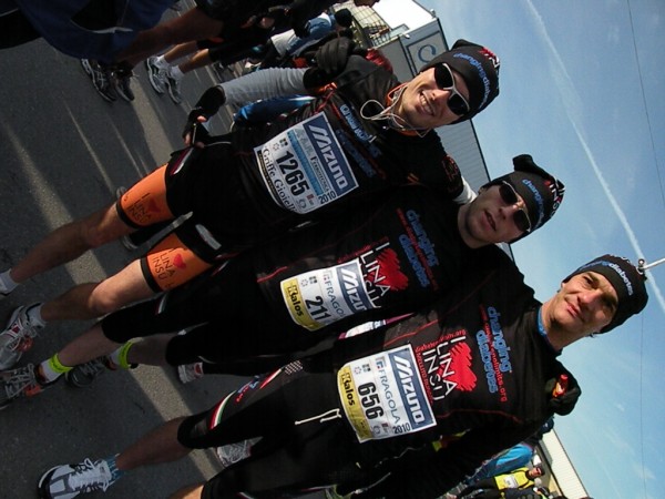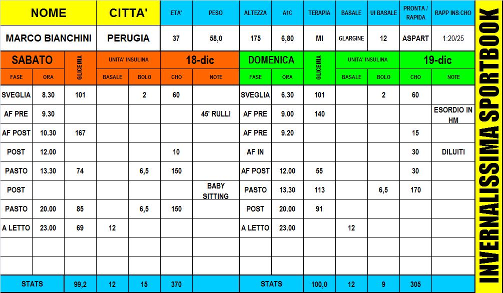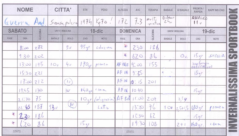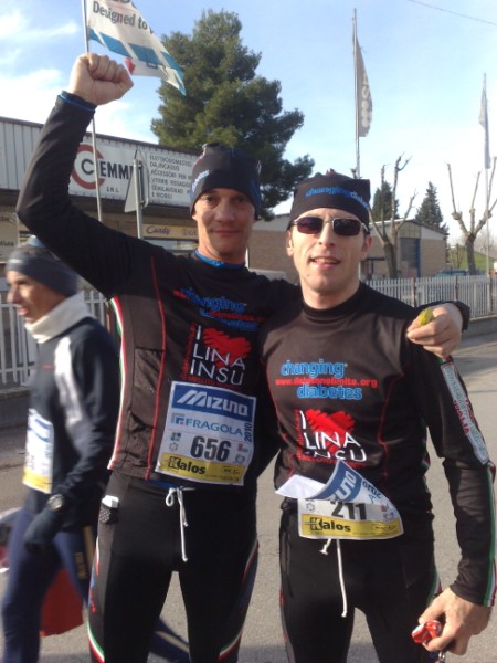 LAST UPDATE 30 DICEMBRE 2010 ... più sotto le 10 righe dai protagonisti ...![]() ![]() Bastia Umbra, 19 dicembre 2010 ![]() 3 type 1 & 1 Doctress ![]() Team Diabete No Limits Italia @ Invernalissima 2010 ![]() Full Victory, Nothing Else (D.D Eisenhower) Nella foto ... Pedro & Andrew War 290 656 PEDROLLO CRISTIAN ATLETA LIBERO 1970 D 1.33.13 1.32.48 0.04.25 308 211 GUERRA ANDREA ATLETA LIBERO 1974 C 1.34.05 1.33.40 0.04.27 505 320 ACCIARI CLAUDIO ATL. ROCCA DI PAPA 1954 G 1.42.32 1.42.30 0.04.51 717 1342 BISCIAIO ATTILIO ATL. TAINO G.TADINO 1955 G 1.53.42 1.53.09 0.05.23 733 1265 BIANCHINI MARCO AVIS CITTA' DI CASTELLO 1973 C 1.54.45 1.54.19 0.05.26 118 1343 BISCIAIO GIUSEPPINA ATL. TAINO G.TADINO 1958 T 2.15.05 2.14.34 0.06.24 ![]() Type 1 Fashion "Un Redazionale Pedrolleggiante ..." di Cristian Pedrollo, DM1, Verona Si è conclusa l’Invernalissima 2010, ultima prova dell'anno per il Team Diabete No Limits: alcuni forfait per infortunio e impraticabilità strade hanno ridotto la presenza numerica del gruppo DNL. Comunque va un mio grazie anche agli assenti per avermi tenuto costantemente aggiornato. Alla partenza lo speaker legge un breve annuncio relativo presenza del Team DNL redatto su mia richiesta dall'ottimo Andrea Guerra che riporto integralmente: “DNL è un onlus composta e gestita da atleti con diabete che promuove la pratica sportiva come strumento aggiunto di benessere per tutti. A tal fine gli associati si impegnano verso se stessi e verso i “colleghi†diversamenti glicemici alla pratica sportiva responsabile e sotto adeguato controllo obbligandosi a raccontarsi nel bene e nel male su www.diabetenolimits.org†A questo sintetico messaggio, si aggiunge un ringraziamento alla Dottoressa Anna Ranchelli per il suo supporto. Clima rigido con temperature sotto lo zero, percorso veloce ma parte centrale nervosa con saliscendi che tagliano le gambe e a tratti ghiacciato: tutti i partenti del Team Diabetenolimits hanno concluso degnamente la loro prova. Visto le condizioni molto invernali abbiamo deciso di dedicare la gara proprio al "NOLIMITS" ... "Quando il gioco si fa duro, i duri cominciano a giocare" ... When the going gets tough, the toughs get going! (cit. John Belushi, Animal House, 1978 - regia di John Landis) Tornando alla partecipazione alla gara e prima di commentare la competitiva, desidero annunciare la vera vincitrice di questo fine settimana… Anna Ranchelli. Il perché di questa scelta è presto spiegato. Due giorni prima mi aveva comunicato infatti che aveva l’influenza e qualche linea di febbre ma comunque se non per la gara sarebbe comunque stata in loco per un supporto morale. La incoraggio e la sera prima mi comunica che ci sarà grazie all'effetto di una miracolosa tisana al lampone. Si presenta alla mattina vestita come l’uomo Michelin (parole sue ) e ci spiega il duro allenamento fatto per questa sua prima gara. Alla mezza di Gardaland qualcuno ha fatto un lungo di 8 km, ma qui a Bastia si rasenta la perfezione: un lungo di 5.5 km, ma dove sta la chicca? L'esecuzione in modo PROGRESSIVO. Non contenta di questa preparazione, a 2 minuti dalla partenza con 4 gradi sotto lo zero mi comunica che si è dimenticata i guanti: da vero gentiluomo decido di darle i miei, mentendo spudoratamente sul fatto che non mi servivano ... mi si sono ghiacciate le mani per tutta la gara. Si è però fatta perdonare, scattando un bel po' di fotografie (che a breve pubblicheremo), accogliendo gli atleti diversamente glicemici con glucometro e pungidito, ma soprattutto concludendo la marcia non competitiva tra i primi posti. A validazione della prestazione, la testimonianza di Marcella, amica e paziente di Anna, diversamente glicemica pure lei e probabile, auspicata "new entry" in DNL. Dunque avverbio per Anna ... EROICAMENTE ... Andrea Guerra completa la sua mezza mantenendo la promessa di finire appena sopra l' 1h e 30: obbiettivo centrato. Andrea è sempre pronto ad accettare le sfide e mettersi in gioco. La sua generosità verso gli altri è cosa nota, ma cosi è anche in gara, dunque avverbio per Guerra ... GENEROSAMENTE. Claudio Acciari si presenta alla partenza dopo una settimana di febbre. Dopo colloquio con la Dott.ssa Ranchelli si decide per il via. Purtroppo lo ritrovo al 4° km molto in crisi ma deciso a concludere ugualmente. Conosciamo i tempi di Claudio, 1h 42’ per lui sono un buon lento. Avverbio per Claudio ... CAPARBIAMENTE. Attilio conclude molto contento, lo vedo personalmente arrivare nel finale con un buon passo e per niente stanco. Mi riferisce essere molto soddisfatto e francamente dall’ aspetto fresco che aveva lo posso confermare. Avverbio per Attilio ... GIOVANILMENTE! Marco Bianchini completa la sua prima mezza in modo molto onorevole facendo meglio di quanto diachiaratomi prima della gara. Lo vedo equipaggiato di tutta la tecnologia disponibile: questi ciclisti sono sempre alla moda, e mi avverte che gli potrei pure telefonare in corsa che lui mi risponde. Andrea ed io abbiamo chiesto se poteva pure spedire un Fax. Avverbio per Marco ... TECNOLOGICAMENTE. Giuseppina decide di gareggiare all'ultimo minuto, malgrado a casa ci fosse suo figlio ... e conosciamo il cuore di mamma di Giusy. Lo spirito melito non la tradisce e conclude la gara del suo passo. La regolarità di Giuseppina la conosciamo tutti. La nostra costante. Avverbio per Giusy dunque ... COSTANTEMENTE. In questi due giorni sono stato in compagnia del gruppo di Claudio e di Gus, Atletica Rocca di Papa, persone molto simpatiche che hanno ascoltato e discusso, facendomi e facendo a Claudio domande su sport e diabete. E' stato per me un test di verifica su quanto appreso e ascoltato ad Arezzo dallo Staff DNL. Hanno proposto un gemmellaggio e probabilmente alcuni di loro verranno alla mezza maratona di Verona ... avverbio per i runners Atletica Rocca di Papa ... SIMPATICAMENTE! "Pro(av)verbialmente" vostro ... Cristian Pedrollo Mi aspetto da tutti i mellito runners le 10 Righe e lo 