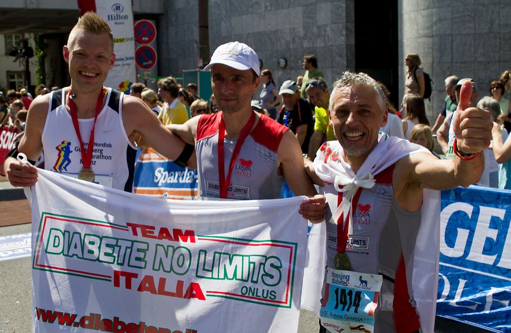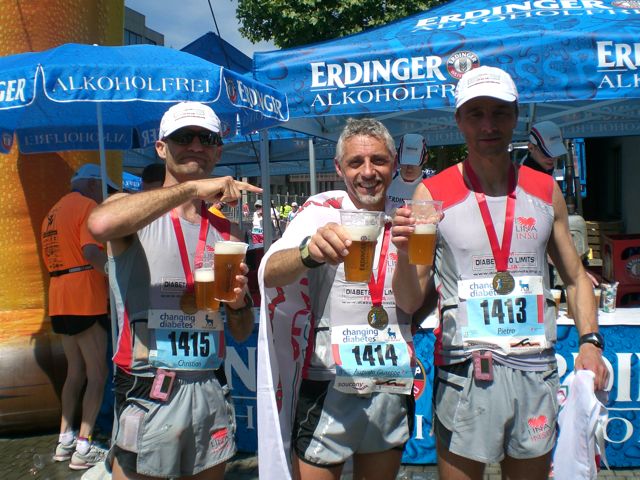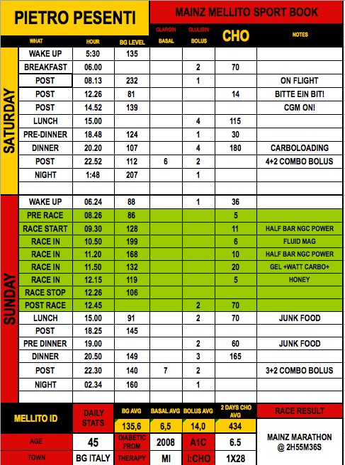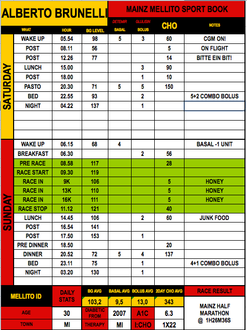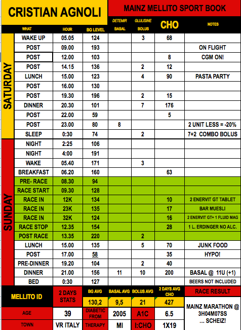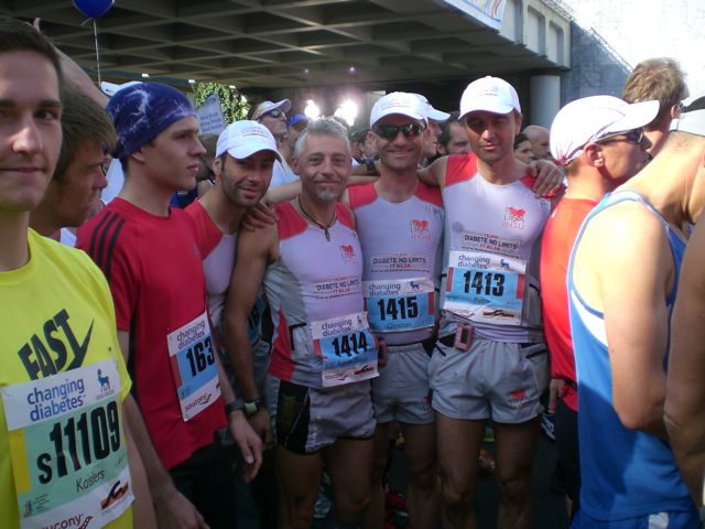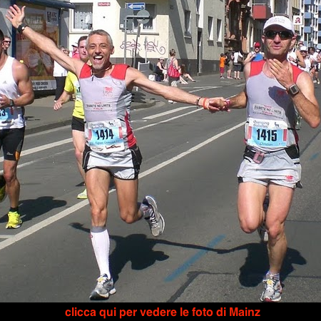 ![]() "Running Uberalles" ... DNL ritorna sulle strade teutoniche per la Novo Nordisk Gutenberg Marathon Mainz ultimo aggiornamento 24 maggio 2011 RISULTATI TEAM DNL @ MAINZ MARATHON 2011 1. 28° assoluto Pietro Pesenti (2° cat. M45) in 2h55:36 (PB) 2. 38° assoluto Augusto Zecca (3°cat M45) in 2h59:48 (PB) 3. 48° assoluto Cristian Agnoli (11° cat M40) in 3h04:07 HALF MARATHON: Alberto Brunelli, 1h26:36 (PB) ![]() Da sx a dx: Soren Kruse, T1 DK (3H02) Pietro Pesenti (2H55) e Augusto Zecca (2H59), T1 Italy ... Cristian Agnoli (3H04) Missing: still running! Team Diabete No Limits Italia @ Mainz Marathon ![]() I fantastici 4 ... Issimo,Gus, Nonno & Dorando MAINZ MARATHON - BUNDESREPUBLIK DEUTSCHLAND ![]() ![]() Clicca su questo logo per accedere al Foto Album Picasa dedicato! 10 righe da Mainz by Alberto "Dorando" Brunelli, DM 1 MI "ZEN ZEILEN AUS MAINZ VON ALBERT SCHWARZELLI" ATLETICAMENTE : sono arrivato a Mainz dopo diverse settimane di ottimi risultati e sensazioni in allenamento. Anche se poteva sembrare la solita scusa pre-gara, il venerdì avevo polpacci che gridavano aiuto e dopo un massaggio facevo fatica anche a camminare. Fortunatamente, già nella giornata di sabato i benefici del massaggio si sono fatti sentire e mi son presentato alla partenza della gara senza particolari dolori. L'obiettivo era di stare attaccato a Pietro e finirla in 1h26'30''; poteva sembrare facile perchè dovevo solamente pensare a seguire il Nonno Pese. Tra me e me dicevo : “fai il mulo, segui il Pese PUNTO E BASTA!â€. I primi 2 km sono volati via, anzi siamo volati perchè la media era sotto i 3'50'' al km, ma dal 3° km il ritmo si era stabilizzato correttamente sul 4'00'' – 4'06''. Passiamo ai 10km in un ottimo 40'30'' e stavo benissimo, ma al km 13 un leggero dislivello mi ha fatto perdere metri da Pietro che non son più riuscito a recuperare. Ho preferito stare da solo, temporeggiare un attimo per capire se si trattasse di una crisi passeggera e fortunatamente dopo 3 km mi sentivo di nuovo bene. Dal km 16 in poi ho riaccelerato, chiudendo il km 18 in 3'50''. Gli ultimi km ho solamente controllato il ritmo visto che ero nei tempi che mi ero prefissato. METABOLICAMENTE : Ho avuto una gestione praticamente perfetta durante tutto l'arco della giornata. Ho gestito bene anche il bolo della colazione e le integrazioni durante la gara. Di solito non mi risulta semplice gestire quelle gare corse in soglia anaerobica o oltre, ma in questa occasione non ho sbagliato quasi nulla. Quando ho integrato in gara l'ho fatto solo per necessità energetiche e non per paure di ipo o rimandate per non andare in iper, questo è da sempre il mio goal! NUTIZIONALMENTE : è la prima uscita DNL dove non abbiamo mai sgarrato prima della gara! Stiamo maturando anche in questo .-) ?! D'altronde avendo al seguito un'eccezionale nutrizionista come Monica risulta tutto più semplice! MENTALMENTE E CONVIVIALMENTE : FINALMENTE ho finalizzato in gara il lavoro svolto durante la preparazione. Per me non è cosa da poco, visto che nelle gare era mio solito tirare i remi in barca. Questa volta la testa mi ha aiutato, ero convinto di poter far bene e cosi è stato. Più corro e più mi piace correre! Più sono impegnato nella vita di tutti i giorni e più sento la necessità di correre appena arrivo a casa! Running is a lifestyle! Scusate … questi sono i pensieri che mi circolano in testa e mi piace sottoscrivere. Non posso poi dimenticare i miei compagni di viaggio o meglio amici. Non lo scrivo per fare bella figura, ma il clima che si instaura ogni qualvolta ci si incontra è favoloso. C'è molta sintonia tra di noi; 2 giorni a Mainz significa scherzare, bersi una birra in compagnia, discutere su quanto sono avanti i tedeschi nell'organizzare un evento e coinvolgere bambini, genitori, ragazzi e nonni, confrontarsi sul diabete, fare pronostici sui tempi in gara, aiutarsi, terminare la gara e andare a supportare gli altri, gioire più per il risultato del tuo amico che per il tuo … grazie friends! ![]() 10 righe da Mainz by Issimo "ZEN ZEILEN ASU MAINZ VON KRISTIAN ENGELS" Filosoficamente: "Non basta fare il bene, bisogna anche farlo bene" (Denis Diderot) Atleticamente: fantastiche sensazioni fino al 23° km, buone tra il 24° e il 27°, ottime di nuovo fino al 32°km e poi il calo … speravo fosse solo un momento … la testa mi diceva di reagire, ma le gambe non la stavano ad ascoltare … nemmeno la fiala di magnesio ha ridato vigore ai miei muscoli affaticati … e nemmeno l'incitamento di Monica … il problema non era tenere duro, per stare sotto le 3 ore dovevo riaccelerare deciso … impensabile per me pescare il jolly alla Gus … io il mio me lo ero evidentemente già giocato! Peccato, con Gus avevamo impostato un buon ritmo, a mio avviso giusto visto il passaggio alla mezza in 1h29:09 … il caldo non mi ha dato fastidio e fino al 33 km sono rimasto in corsa … al 35° km ero ancora in proiezione perfetta … la maratona misura però 42,195 mt … devo trovare il modo di farli tutti bene. Credo che ci riuscirò prima o poi, ma non nel 2011 … ci riproveremo nel 2012! Mi consolo con le indubbie doti di recupero (fisico e morale) che tutti mi riconoscono … e che mi consentono di riprendere ad allenarmi da subito, con gioia, passando anche per altre discipline (v. ciclismo). Metabolicamente: gestione impeccabile durante la gara. Sul resto della due giorni, rimando alla lettura del mio diario metabolico. Qualche picco qui e là ma "Il diabetico perfetto non esiste, ovvero esiste nella misura in cui accetta l'imperfezione!" ![]() Mentalmente … lapalissiano che avrei preferito un altro epilogo … penso di aver fatto tutto quello che potevo anche da un punto di vista mentale … la preparazione iniziata a gennaio è stata un percorso di felicità (a parte le prime settimane di precaria condizione fisica e salute). Mai ho affrontato una roadmap così spensieratamente e con gioia. Auguro a tutti di correre con pi