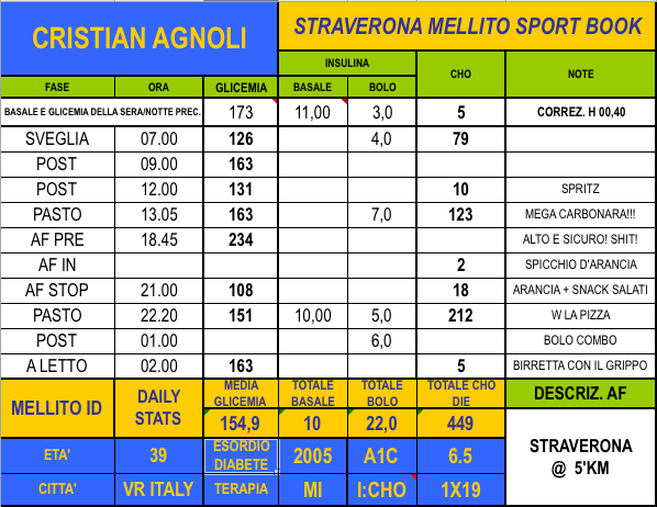 ![]() Straverona sotto le Stelle! sabato 14 maggio 2011 - h 19,00 Mezza Maratona Competitiva A braccia aperte ... da sx a dx: Bru, Tania, Grip & Issimo PHOTO ALBUM PICASA, PICS BY NIK THE CLICK Straverona ... dalle Stelle alle Stalle Cronaca di un flop, tra sorrisi, riflessioni ed elucubrazioni mentali della cui attendibilità rispondiamo redazionale by Issimo featuring Bru & The Grip I tre mellito runners noti alle cronache presenti in corsa alla "Straverona sotto le Stelle" prima edizione, pensavano di correre una gara in convivialità e spensieratezza a ritmo super controllato, senza assilli cronometrici, tra i più bei scorci della quarta città turistica italiana, tra gli applausi e gli incoraggiamenti del pubblico festante, avvolti dalla luce del tramonto prima e dal crepuscolo, sotto le stelle, poi. Insomma atmosfera rilassata nella bella Verona invasa da podisti da tutta Italia: dal punto di vista atletico e metabolico tutto è filato liscio, meno per quanto riguarda il contesto. Nulla da segnalare sul fronte cronometrico visto che Alberto, Cristian e Alessandro hanno svolto il ruolo di pacer per Tania, minuta e tenace runner lombarda normoglicemica, aiutandola a concludere l'impegnativa corsa in 1h48:07. Un piccolo esempio di fiducia nelle persone con diabete: Tania a tre podisti con metabolismo imperfetto degli zuccheri si è affidata per impostare ritmo, ricevere consigli sul timing delle integrazioni ed essere portata in parata finale all'arrivo. Peccato che non esistano più le buone maniere. Nonostante il presidentissimo in veste di "moralizzatore" si sia speso per redarguire i podisti maschi tipo Alfa dal sprintare una signora, la bella e brava Tania è stata sverniciata da almeno 4 runners sulla dirittura finale per limare qualche secondo ad un anonimo 1h48 chiuso sotto la pioggia in una piazza deserta per il fuggi fuggi generale: maggiore soddisfazione avrebbero avuto nel pagare dazio al galateo … noblesse oblige adieu! Presidente Moralizzatore ... "Non si sprintano le signore" ... nulla da fare ... il nr 1233 è in trans agonistica! A breve un profilo del Soggetto Ignoto. Coda conviviale in pizzeria … asciutti e cambiati abbiamo passato alcune ore di piacevole conversazione a tavola. In tutto 16 persone di varia estrazione metabolica e sociale a condividere il dopo gara. Tra gli altri, segnaliamo la presenza delle runner in rosa Tipo 1 Ilenia e Elisa (attualmente ai box ma pronta a ripartire) e del nostro type 1 Nik the Click, le cui fantastiche foto sono on line!C'è poco da dire su aspetti atletici e metabolici, evincibili dai dati pubblicati. ![]() Preferiamo invece concentrarci su alcuni spunti di profonda riflessione su quanto accaduto a latere della manifestazione podistica e da qui lanciarci in pindariche e e tipicamente presidenziali elucubrazioni mentali a 360° gradi su senso della corsa, della vita e del metabolismo imperfetto degli zuccheri. A voi prenderci o meno sul serio. Ci abbiamo dovuto mettere del nostro per dare un senso alla partecipazione a questa gara … per Grip il ritorno alla corsa dopo un mese di inattività , per Issimo una tranquilla settimana di polivalenza sportiva tra maratona e ciclismo, per Bru una parata per festeggiare il fresco PB in mezza: ma è il "sorriso" dei mellito runners la vera garanzia di un sano rapporto con lo sport, anche quando quello che ci gira intorno non funziona … decisamente la prima edizione della Verona sotto le stelle e finita "dalle stelle alle stalle" … caos, errori, autisti indisciplinati, isterismo collettivo. Un flop su cui nemmeno la stampa locale ha potuto soprassedere. Gli organizzatori si assumeranno le proprie responsabilità e rimedieranno ai propri errori anche se crediamo ci vorrà un enorme sforzo per recuperare il danno di immagine causato da questa prima edizione. ![]() DISCLAIMER: A causa di un disguido il resto del racconto è andato perso ... è stato riscritto ma non garantiamo la stessa efficacia della versione originale. ... GO AHEAD! Aspetti Flop - percorso poco suggestivo e affatto veloce per vie strette tortuose (1500 partenti) con l'aggravante dell'errore nella tracciatura, - polemiche alla fine con il vincitore che si arrabbia perché voleva essere premiato, pur sapendo di aver vinto perché i più forti hanno seguito le indicazioni sbagliate … e vai con i cori "vergogna, vergogna" … mamma mia come siamo caduti in basso! - orario prescelto inadatto sia per la congestione di traffico e turisti sia per la mancata e annunciata corsa sotto le stelle: meglio chiamarla "corsa al tramonto tra clacson e gas di scarico" - assoluta mancanza di senso civico della cittadinanza di fronte a una manifestazione comunque importante e gravi errori di approccio da parte dei "podostorditi" che scambiano il piacere della corsa con l'autoaffermazione del proprio ego smoderato = accendi i muscoli e spegni il cervello. Aspetti Positivi - assaporare il piacere di correre sotto una pioggerellina purificatrice in una calda sera d'estate - solo per i sacchettari, un pacco gara ricchissimo (ma a noi non ce ne po' frega de meno) - la pazienza dei volontari ai ristori, - le scuse degli organizzatori - sorridere agli imprevisti - il dopo gara in allegria con DNL e i DNL Friends Filosoficamente: rabbia, insulti, minacce, parolacce, bestemmie, autisti e motociclisti incazzati neri, manovre non autorizzate, mancato rispetto dei blocchi al traffico‚ la cittadinanza veronese ha reagito in maniera "violenta" e "spropositata" alla temporanea chiusura del traffico di alcune vie, a rallentamenti e ingorghi. Nemmeno i podisti in gara si sono distinti per fairplay ma a loro va la parziale giustificazione che erano impegnati in uno sforzo fisico e magari mancava la necessaria lucidità mentale. Correndo il primo giro in questo contesto, la domanda sorge dunque spontanea: tra le migliaia di persone rallentate o parzialmente bloccate nel traffico che sono andate fuori di testa con reazioni spropositate al limite de