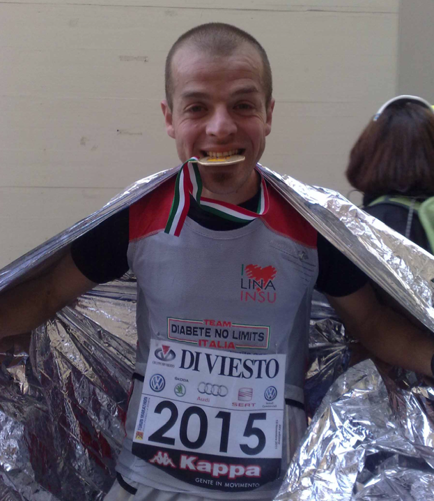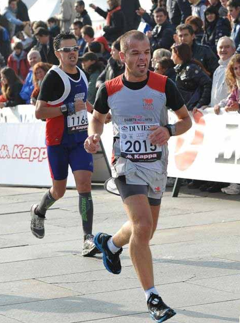 Turin Marathon 2011 • 13 novembre 2011 ![]() Brillante prova del "mellitu-runner" Piermario Bellu alla Turin Marathon: 3h08:34 (PB)! Mellito ID: Pier Mario Bellu (OT) • classe 1981 • DM1 dal 1998 • terapia MI (glargine - lispro) • A1C: 5,6 (gen 2011) ![]() Pier Mario Bellu racconta la sua Turin Marathon ... Non potete immaginare quanto ho aspettato e sognato questo momento! Pensavo di dover archiviare il 2011 come un anno negativo, da dimenticare e, invece, eccomi qui, a scrivere il resoconto della mia terza maratona e del mio nuovo PERSONAL BEST. Certo, è stata molto dura! A gennaio il mio ginocchio a iniziato a farmi soffrire, tanto da costringermi a uno stop di 4 mesi e, di conseguenza, a rinunciare ai 42 km di Praga, maratona, questa, alla quale tenevo tantissimo, visto che sarebbe stata la mia prima all’estero. Ho passato un brutto periodo e mentirei se vi raccontassi il contrario. Mi sono rivolto a numerosi specialisti, ma nessuno riusciva a risolvere il mio problema, ero disperato. A maggio, però, dopo tanta sfortuna, trovo la persona giusta, che in poco tempo mi fa guarire e mi fa ritornare a correre, dopo quattro interminabili mesi. La voglia c’era, ma praticamente è stato come riniziare tutto da capo: testa e gambe non rispondevano più come prima e il mio peso era aumentato. E Proprio in quei giorni, manco a farlo a posta, alcuni amici mi propongono di andare con loro a correre la maratona di Torino, in programma il 13 novembre 2011. Ho pensato: “come c… faccio a preparare una maratona partendo da questa condizione fisica?” “E’ possibile migliorare il tempo di Venezia?” “No, non lo è” “E allora? Come faccio ad allenarmi al massimo se non ho uno stimolo importante?” “Va beh, potrei andarci e accontentarmi di quello che viene, almeno mi servirà a ripartire!”. Ma a chi voglio mentire? Non è da me accontentarmi, ma non mi posso neanche tirare indietro, quindi: proviamoci.Inizio a fare chilometri per tornare in forma nel minor tempo possibile: allenamenti duri e cura maniacale dell’alimentazione, solo così posso farcela . La prima uscita è di 8 km, fantastica e indimenticabile!. Dopo 4 settimane ero già a 21 km, dopo 6 a 28 km e, subito dopo, arrivano i 30. Corro da solo, percorsi impegnativi e mi godo il momento; bene, iniziamo a pensare seriamente a quella proposta. Il tempo va via velocissimo e la preparazione ha inizio l’ultima settimana di agosto. Dopo qualche indecisione, opto per la solita tabella, cercando di alleggerire, con criterio, alcuni allenamenti, tenuto conto della condizione ancora precaria. l peso è buono, la media giornaliera di insulina e di 17/18 unità di rapida e 14/15 di lenta; si può migliorare! Il primo mese è devastante e, nei lunghi domenicali, rischio di scoppiare da un momento all’altro, soprattutto a causa delle temperature altissime, che mi mettono quasi in ginocchio. Alla quinta settimana arriva la svolta: decido di partecipare alla SARDINIA WINE HALF MARATHON, una mezza dal percorso impegnativo, con 10 km di discesa e gli altri 11 quasi tutti in salita; riesco a correre alla grande, facendo la seconda parte più veloce della prima e riuscendo a classificarmi 16° assoluto. Da qui in poi cambia tutto: le ripetute non fanno più paura, nei progressivi spingo alla grande e quando arrivano i lunghi, nell’ultima fase della preparazione, quella più impegnativa, io sono in perfetta forma e vado più che bene; solo l’allenamento di 35 km, a due settimane dalla maratona, mi mette in difficoltà , ma ormai ho deciso: ritocco il ritmo gara! A tre giorni dalla maratona peso 66,7 kg e le dosi di insulina sono diminuite notevolmente: 9/10 unità di rapida e 12/13 di lenta al giorno; ora inizia il carico dei carboidrati, che, come sempre, è un po’ difficile da gestire… La notte prima della maratona è, come al solito, tribolata; questa volta, però, a causa di un mio errore con l’insulina, che mi tiene per tante ore in ipo e mi fa svegliare almeno 5 o 6 volte. Nonostante tutto, però, alle 6:00 sono in piedi per la colazione, sufficientemente riposato e con 80 di glicemia; mando giù 5 fette biscottate con abbondante miele, una barretta, 2 caffè e inizio a prepararmi… Sono pronto e preoccupatissimo, ma ormai ci siamo; Stefania mi chiede: “sei teso?” “No”, rispondo io, ma il timore è quello di non riuscire a migliorarmi. Mi abbraccia, un bacio e via con l’amico Nino verso la partenza. Piazza Castello è affollatissima, si respira un’atmosfera magica; manca pochissimo, controllo la glicemia: 110, bassina! Un po’ di miele e 3 liquirizie; ancora una corsetta per scaldarmi e via in griglia, pronti a partire. Ora sono concentratissimo, anche la paura sembra passata e, mentre cantano l’inno d’Italia, io ripasso la strategia di gara; anche questa volta ho studiato bene e so come affrontare il percorso: “la prima parte è scorrevole, quindi posso tenere un passo di 4:31/4:32 fino a Rivalta, cioè al km 23; da qui, 5 km di salita fino a Rivoli, al 28°, tratto, questo, da affrontare 8/10 secondi più lento e nel quale, quindi, perderò 40/50 secondi e, poi, a 4:30 fino all’arrivo… se tutto fila liscio, taglierò il traguardo con un tempo che va da 3:11:00 a 3:12:00. Stretta di mano con Nino, lo sparo e…partiti! Rimango imbottigliato nei primi metri, ho difficoltà a divincolarmi e solo quando arriviamo a Piazza Vittorio riesco a liberarmi e ad impostare il mio passo. I km passano velocemente; il percorso ci porta verso Moncalieri all’8° km poi a Nichelino al 10° e a Beinasco al 15°; tanta gente aspetta il nostro passaggio e, instancabilmente, ci incita. Al 19° prendo il primo integratore di carboidrati e al ristoro del 20° bevo l’acqua; Il mio garmin, però, inizia ha dare problemi, non posso più vedere la media del km, indispensabile nel tratto in salita che sta per arrivare; va beh, sfrutterò le mie doti di calcolatore… Attraversiamo Orbassano; qui l’accoglie