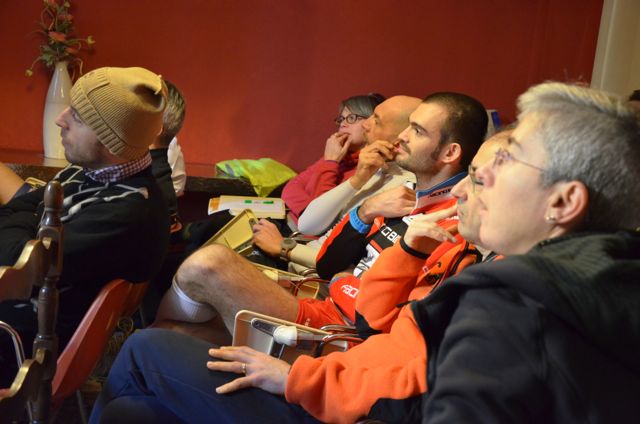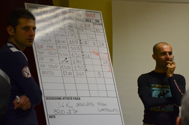 ![]() REPORT TEST CAMP > TEST AS YOU ARE! Cronaca della tre giorni cortonese targata DNL ![]() testo di Cristian Agnoli, presidente DNL ![]() Premessa > AAA … volontari preparati e pronti allo "smazzamento" cercasi … Alessandro (referente DNL per Test Camp) in tal senso numero 1, ma, ovviamente, per proseguire il percorso intrapreo, servono anche i numeri 2,3,4 e così via! DAY 1 • venerdì 25 gennaio 2013 La bella cittadina di Cortona domina dai suoi quasi 500 mt di quota la Val di Chiana. E' qui che alla spicciolata a partire dal pomeriggio si ritrovano i partecipanti confermati @ Test Camp, stage di allenamento dedicato alla valutazione funzionale promosso da DNL. Una trentina di persone mediamente presenti tra type'1, accompagnatori e addetti ai lavori: un evento volutamente più circoscritto e approfondito. Peccato per alcuni forfait dell'ultimo minuto, ma gli imprevisti fanno parte della vita. Ci saranno altre occasioni di incontro. A fare gli onori di casa un puntualissimo Grippo, referente DNL per il Test Camp. Le fredde giornate invernali si fanno sentire anche all'interno della struttura ricettiva, i cui termosifoni da poco accesi non sprigionano ancora potenza calorifera sufficiente per scaldare l'ambiente adeguatamente. L'atmosfera è però riscaldata dall'entusiasmo dei presenti, la cui abnegazione e resilienza è nota alla parti. Si comincia con fisiologico e consolidato ritardo per consentire gli arrivi di tutti. A una breve presentazione presidenziale, il collaudato "Identikit" commentato dai nostri specialisti, segue la sintetica, chiara e utilissima relazione di doc Maurizio Sudano, all'ultimo minuto resosi disponibile, dal titolo "Briciole di metabolismo dei flussi energetici". Parole scandite con tono sicuro e platea tutt'orecchi. Un sunto efficace di cui potete trovare il pdf on line in questa sezione. Doc Sudano Session > Briciole di metabolismo dei flussi energetici! > PDF clicca sull'immagine L'arte della sintesi è necessaria per rientrare nei tempi, e la conduzione presidenziale fa di necessità virtù, riducendo l'ampiezza del "briefing atletico-metabolico" limitato a un paio di casi. Si trova anche il tempo per effettuare alcuni test impedenziometrici e così portarsi avanti per l'indomani. Flessibilità e capacità di adeguare ritmi, tempi e dosaggi non riguardano solo la gestione metabolica. Momento ilare e distensivo con la proiezione del video in versione "uncensored" della Dahon Defì 2013, pistolotti e commenti post race inclusi. Anche dalla "goliardia" possono scaturire provocazioni costruttive e stimoli a ragionare su fatti e misfatti dello sport a glicemia controllata! Con acclamazione generale la riunione viene interrotta in favore della cena conviviale. Nel frattempo gli ultimi ritardatari si aggiungono alla truppa. La sala del banchetto, in linea con il resto della struttura alberghiera, presenta temperature rigide ma accettabili. Tutti "intabarrati" ci dedichiamo a soddisfare i nostri fabbisogni energetici a base di tortelli spinaci e ricotta e cosciotto di pollo con fagiolini. Niente dessert per questo camp in favore di frutta fresca. ![]() Una breve riunione tecnica postprandiale giusto per organizzare la giornata del sabato, puntualizzare alcune tempistiche e definire la scaletta dei test, in base alle indicazioni dei tecnici del Marathon Center: Huber, Salvo e Gigi. Il "sciogliere le righe" giunge con lieve anticipo sui tempi previsti e consente ai tira-tardi un'uscita per il bel centro storico di Cortona. Andrea Guerra e Doc Mario preferiscono, all'affollato pub centrale pieno di giovani che si godono il venerdì sera, consumare un "sambuchino" in intimità in locale appartato. Il resto della truppa si gode birra, soft-drink e salatini in un accogliente e calda saletta. C'è chi pone rimedio a qualche curva glicemica al ribasso dovuta a valutazioni errate del bolo pranziate. Mai uscita serale fu più provvidenziale. Suona la mezzanotte. Chi prima, chi dopo, si fa rientro a Casa Betania. Domani si comincia presto … colazione dalle 7 e test a partire dalle 8! ![]() DAY 2 • 26 GENNAIO 2013 Nottata passata a metabolizzare, oltre al pasto serale, anche i tanti input delle "briciole di fisiologia dei flussi energetici" sparse nei nostri cervelli da doc Sudano. Homo Lipidicus o Homo CarboidratiKus con la "K" … questo è il dilemma! O semplicemente bisogna imparare a ottimizzare le miscele di substrati energetici in base a obiettivi, propensioni e potenziale. Dopo tanti anni di diabete e di diabetologia dello sport siamo ancora qui a disquisire sul fatto che "i grassi bruciano al fuoco degli zuccheri" … e ogni volta analizzando questo semplice concetto emergono considerazioni a 360 gradi di fondamentale importanza per la gestione metabolica, valida tout court, per persone con e senza diabete.La sala colazione è presidiata dai più mattinieri. Chiacchiericcio diffuso. Dopo 24 ore di riscaldamento a tutta forza, le temperature medie all'interno di Casa Betania sono in linea con con le linee guida dell'associazione nazionale italiana Caldaisti. Plicometri, sensori, bilance, terminali, cavi e cavetti: tutto quello che serve per test di soglia, antropometrici e impedenziometrici. Watt, soglie, lattato, battiti, sudore, scarpette. Il freddo del primo giorno è già un lontano ricordo. I rulli già vanno a "bombazza" e si spillano i primi valori di "lattato" sul tapis roulant. La sala nel frattempo si riempie di curiosi, testanti e non. La bioimpedenziometria, novità 2013, per tutti. Sulla composizione corporea, la reattanza, l'equilibrio elettrolitico saremo presto edotti! Tra i testanti, atleti di diversa estrazione e prestazionalità . Ma ai Camp DNL atleti principianti, medi e evoluti hanno la stessa cittadinanza: il motore conta fino a un certo punto. L'importante è provare a tirare fuori dal nostro piccolo o grande dono (o chiamatelo potenziale o chiamatelo talento) il meglio! La mattinata vola e il fitto programma del Test Camp non c
